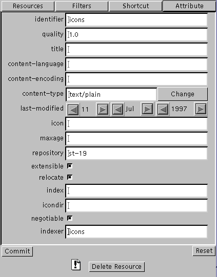 Select the user, the "attributes" helper will appear in the right part of the window. Do all your modification, the click on "Commit" to validate them. If you don't click on commit, your changes will be cancelled if you move to another resource. While editing the attributes of the user, you can reset the attributes to the ones found on the server by click on the "reset" button.