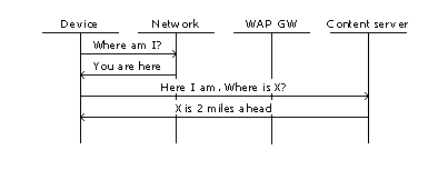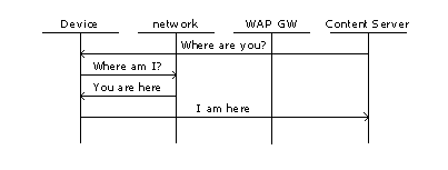 An authorized application tracks the MS. The location request goes to the MS. The MS determines its location by whatever means is supported and reports this information back to the requestor. A WAP gateway simply performs transformations and does not need to know that location information is being passed through the system.