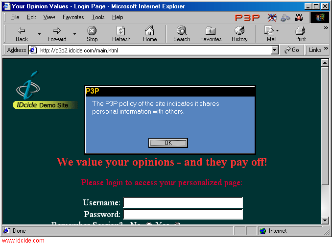 and uses cookies. IDcide Privacy Companion alerts of the bad P3P