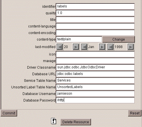3Run the Jigsaw JigAdmin utility, navigate to the space section; click on Resources, then fill in an appropriate identifier for the label bureau resource (e.g. labels), and enter w3c.jigsaw.pics.bureau.LabelBureauResource for the class name. |