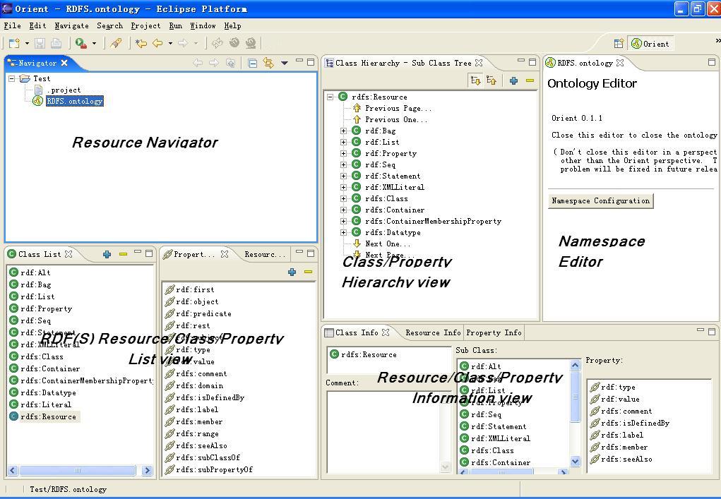 rdfs:Resource, rdfs:Class as nodes; rdf:type, rdfs:subClassOf as properties