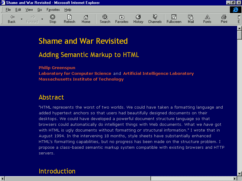 Today, users should require more from the information they access. Those authoring HTML can enhance their content by using the full semantics of HTML and adding style sheets. Those authoring content in other formats before putting them on the Web should ensure that the translation to HTML preserves the original semantics. This requires additional efforts during authoring but will pay off as new Web applications become possible. XML allows you to encode highly structured data and should be carefully considered when designing new Web applications.