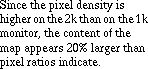 The primary monitor has a resolution of 2048x2048 pixels, while the secondary screen offers 1152x900. The largest map possible is then (2048x3)/900 = 6.83, but since the decimation is simpler to compute given integer decimation factors, 7:1 is scale of the pixmaps.