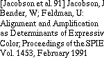 extends the Mackinlay diagram by devising a method of quantifying the relative expressive qualities of color combinations. They show that hue alignment, coupled with contrast of value, is strongly correlated with reading speed. Therefore, when displaying text, the contrast of value should be high, while other information can afford less contrast of value. Also, they report the off-complementary dyad when contrast of value is low to be viewed as energetic. Studies by Jacobson, Bender and Feldman [Jacobsen et al. 91]