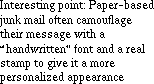 A constant challenge for recipients of electronic mail is to filter out important messages from the "junk mail". Personal mail is often important, while messages form mailing lists often can be ignored. Paper-based mail recipients have the same problem, but handwritten letters are often easier to distinguish from junk mail.