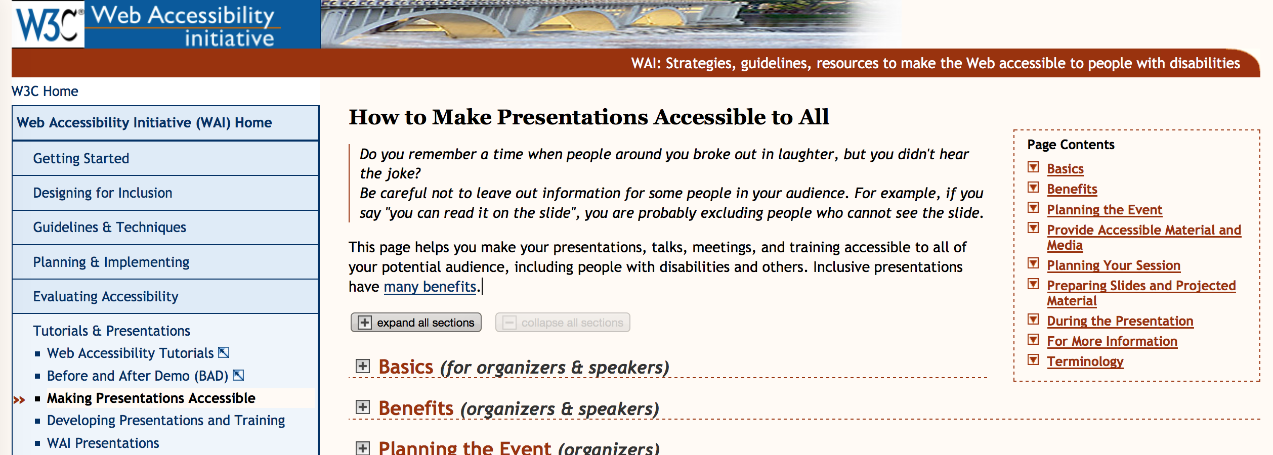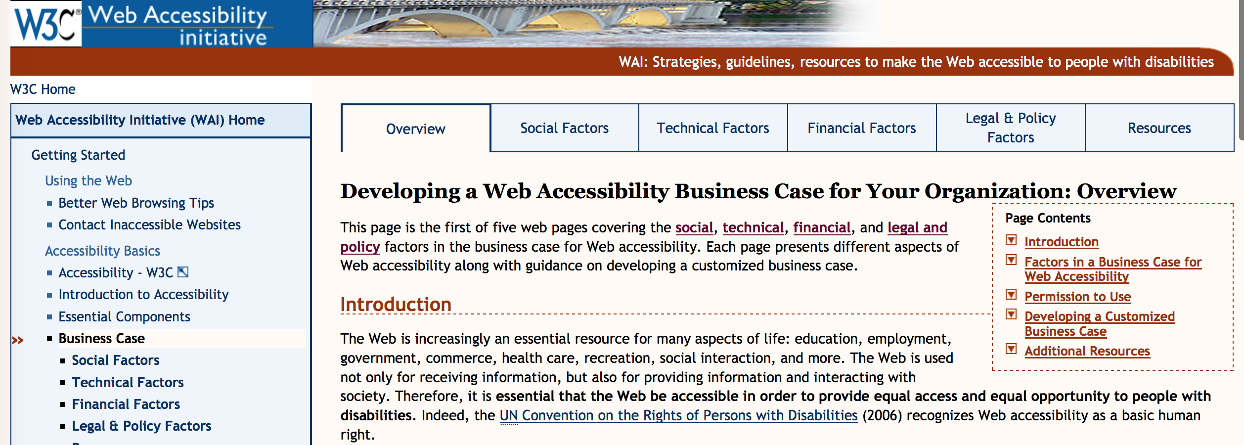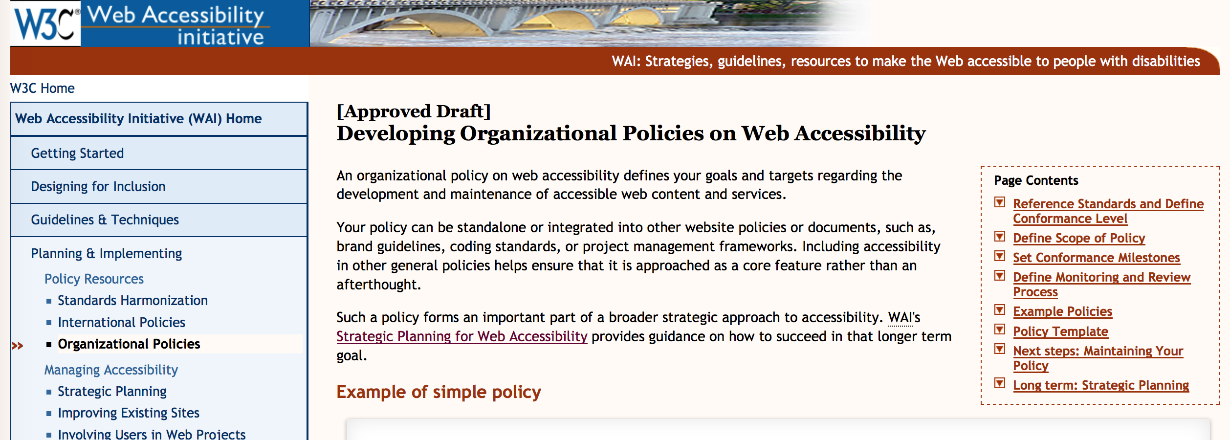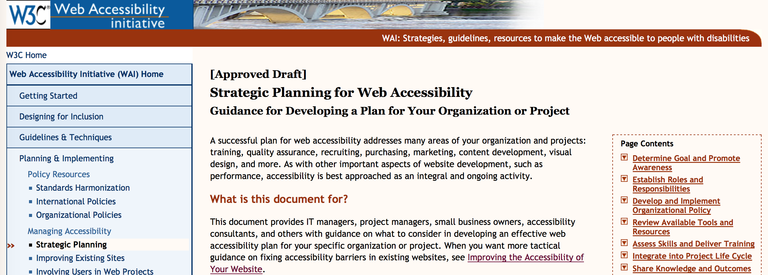 W3C Web Accessibility Initiative (WAI) develops strategies, guidelines, resources to make the Web accessible for people with disabilities.