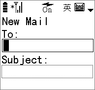 | This example shows the mail sending form using INPUT tags. The focused form is expressed as solid surrounding lines, and non-focused forms are expressed as dotted surrounding line. The cursor point for input characters is expressed as a reverse box. |