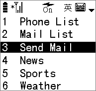 Here we describe the examples of applications by using Compact HTML. The following examples show the compact browser for cellular phones. The screen is the space of 7 text lines and 16 characters wide. The top line is used for displaying the status information.