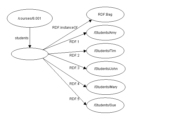 As described in Section 3, it is frequently necessary to create a collection of nodes; for example to state that a property has an ordered sequence of values. RDF defines three kinds of collections: ordered lists of nodes, called Sequences, unordered lists of nodes, called Bags, and lists that represent alternatives for the (single) value of a property, called Alternatives.