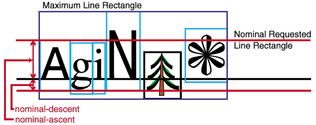 Some formatting objects are block-level and others are inline-level. This refers to the types of areas which they generate, which in turn refer to their default placement method. Inline-areas (for example, glyph-areas) are collected into lines and the direction in which they are stacked is the inline-progression-direction. Lines are a type of block-area and these are stacked in a direction perpendicular to the inline-progression-direction, called the block-progression-direction. See Section 4 for detailed decriptions of these area types and directions.