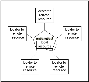 [Definition: A local resource is an XML element that participates in a link by virtue of having as its parent, or being itself, a linking element]. [Definition: Any resource or resource portion that participates in a link by virtue of being addressed with a URI reference is considered a remote resource, even if it is in the same XML document as the link, or even inside the same linking element.] Put another way, a local resource is specified "by value," and a remote resource is specified "by reference."
