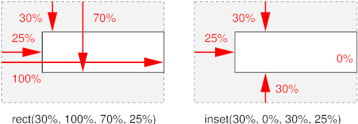 Note that the 'clip' property only has effect on elements that have a 'overflow' property with a value other than 'visible'. <shape> is either 'rect(...)' or 'inset(...)'. Values have the following meanings: