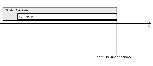 ccxml.kill.unconditional event raisedIf at anytime a ccxml.kill.unconditional event is raised by the underlying implementation, the CCXML session is