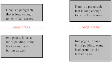 Two possibilities for 'border-break': on the left, the value 'none', on the right the value 'solid'.