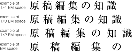 Since the Letterpress printing era, KANJI and KANA letters have been designed so that they are easy to read regardless of text direction and with the solid setting. However, unlike the letterpress era when several sizes of the Original pattern of a letter was required to create Matrices, in today's digital era, because the same original pattern can be used for any size simply by enlargement or reduction, Inter-character spacing might be necessary when composing lines with large character size. |