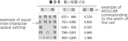 Illustrations and tables are normally placed inside the area which is defined via KIHONHANMEN. However, depending on the illustration or table, there are also cases in which they jut outside the area of KIHONHANMEN.