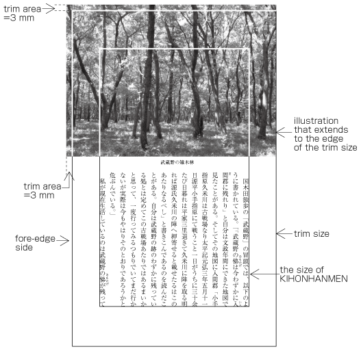 To achieve a visual effect, the illustration or table juts outside of KIHONHANMEN. Especially the "bleeds" method of using the complete paper area is not used often books, but in magazines (see Fig. A1-8).