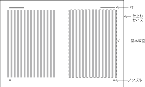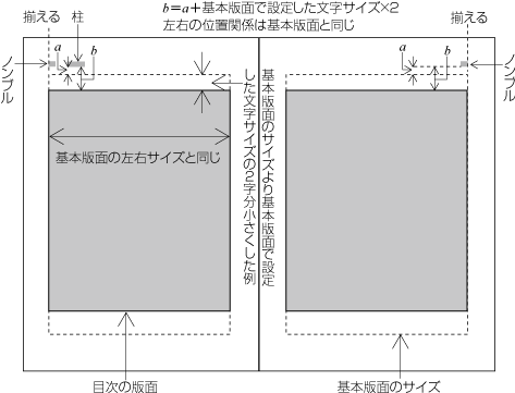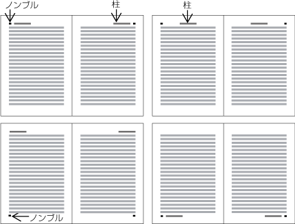 柱及びノンブルの基本版面との位置関係では,次のような点に注意する.