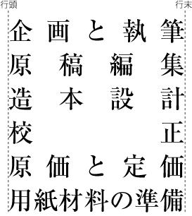 天・小口寄りに縦組で柱を配置した場合の例(図1-30参照) 基本版面との上下方向の空きは9ポイント(9ポ) 基本版面との左右方向の空き(入りともいう)は9ポイント(9ポ) |