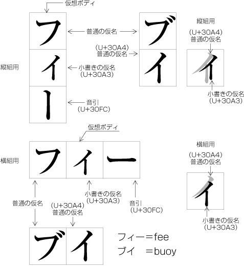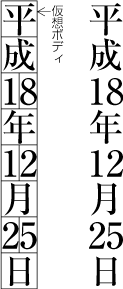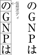 図1-7 小書きの仮名と仮想ボディの関係