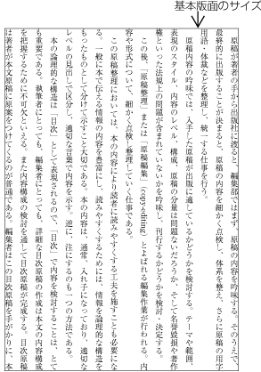 本の基本として設計される版面体裁が基本版面である.基本版面の設計要素としては,次がある(図1-3参照).