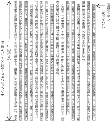 これは,2つの理由による.この2つを満足させるために,行長は,文字サイズの整数倍に設定する必要がある.