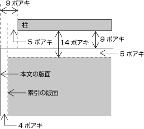 図1-31 基本版面より小さくなった索引の版面と柱との位置関係