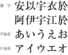 活字組版の時代から漢字と仮名の設計は,縦組又は横組にした場合でも読みやすく,また,ベタ組とした場合に読みやすいように設計されていた.ただし,活字組版では,何段階かに分けて原図(母型の元になるもの)を作成していたが,今日では,同一の原図から単純に拡大・縮小して使用するので,大きな文字サイズにした際には,字間の調整が必要になる場合もでてきた. |
