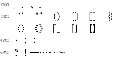 図1-5 日本語組版に使用する約物類の例