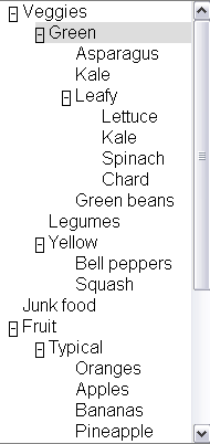 A basic tree view allows the user to select different list items and expand and collapse embedded lists. Arrow keys are used to navigate through a tree, including left/right to collapse/expand sub trees. Double clicking with the mouse also toggles expansion.