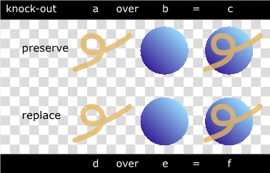 For a complex group where the ‘knock-out’ property is set to replace, the buffer is created. The initial contents of the buffer and whether a secondary opacity channel is created depends on the value of the ‘enable-background’ property.
