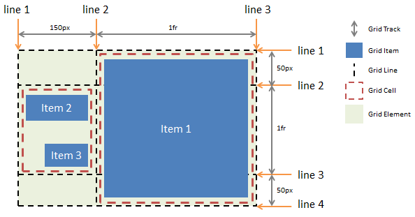 Note that there are multiple ways to specify the structure of the Grid element and to position and size Grid items, each optimized for different