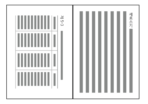 가로짜기는 정상적인 방향으로 배치하고, 세로짜기 경우는, 다음 세 가지 배치 방법이 있다.