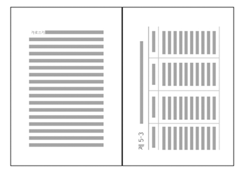 단은 왼쪽에서 오른쪽으로, 페이지는 왼쪽에서 오른쪽으로 진행하며, 오른쪽에서 왼쪽으로 페이지를 넘긴다.