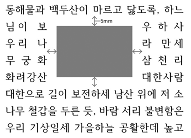 한글과 같은 방향으로 한 글자씩 배열한다.