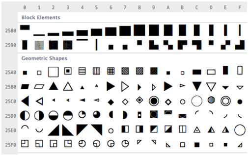 기본 로마자 (U+0020~U+007F): 로마자(비례폭), 숫자, 반각 약물