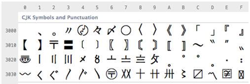 CJK 기호 및 구두점 (U+3000~): 전각 괄호, 온점, 고리점