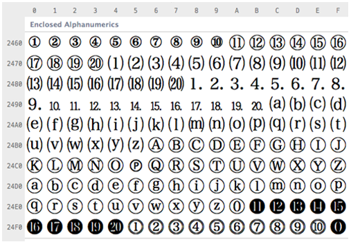 둘러싼 CJK 문자·숫자 (U+3200~)