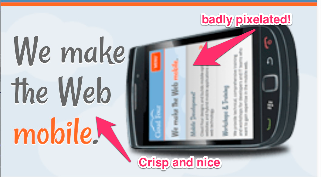 Furthermore, as the number and varieties of high-density screens has increased (both on mobile and desktop devices), web developers have had to create custom techniques for serving images that best match a browser's environmental conditions. For a list of examples of the range of techniques in use in 2012, see Chris Coyier's article "Which responsive images solution should you use?". These techniques have a number of shortcomings, which are discussed below (and these shortcomings serve as the motivation to reach out to the W3C and WHATWG for standardization).