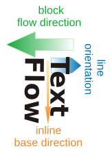 The inline base direction is the primary direction in which content is ordered on a line and defines on which sides the “start” and “end” of a line are. The direction property specifies the inline base direction of a box and, together with the unicode-bidi property and the inherent directionality of any text content, determines the ordering of inline-level content within a line.