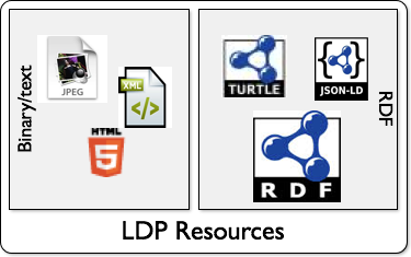 An LDP server manages two kinds of LDPRs, those resources who whose state is represented using RDF (LDP-RS) and those using other formats (LDP-NR). LDP-RSs have the unique quality that their representation is based on RDF, which addresses a number of use cases from web metadata, open data models, machine processable information, and automated processing by software agents [rdf11-concepts]. LDP-NRs are almost anything on the Web today: images, HTML pages, word processing documents, spreadsheets, etc. and LDP-RSs hold metadata associated with LDP-NRs in some cases.