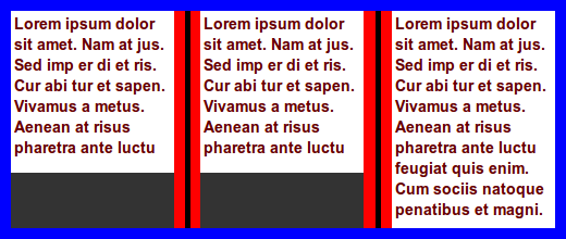 In this example, the first element requests to appear on the last page, while the second element requests to appear in the natural column. If the natural column of the second element appears on a page before the last page, the second element will appear visually before the first.