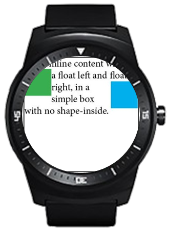 Everything on the web is a rectangle. For example, the window content area in a web browser is a rectangle. Each HTML element follows the W3C box model and thus is also a rectangle. New devices with a round display are now emerging. The current web standards lack some features to support the devices as follows:
