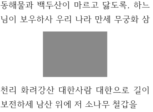 Hangul syllables, proportional width basic Latin, and fixed width or proportional width Arabic numerals are used.