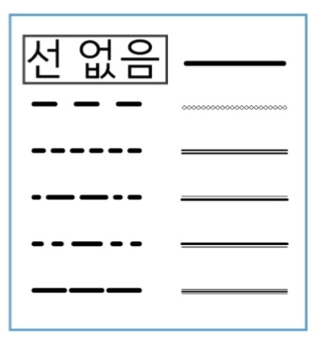 Objects can have borders with various types of line.