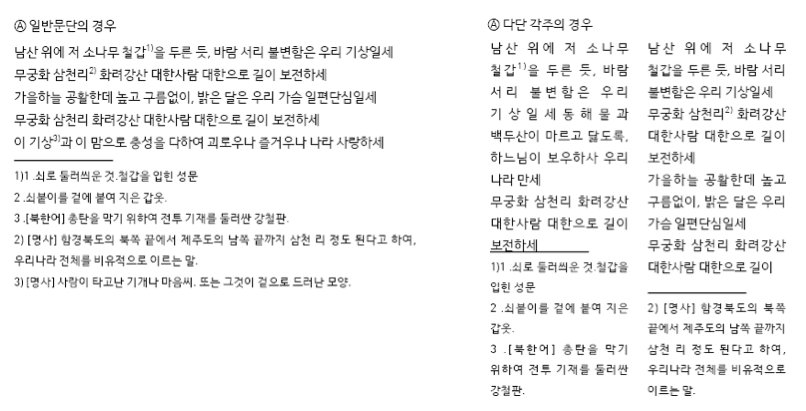 Numbers used in footnotes and endnotes use many types of symbols and characters, such as Arabic numerals, Latin alphabet characters, Hangul characters, Hanja characters, etc.