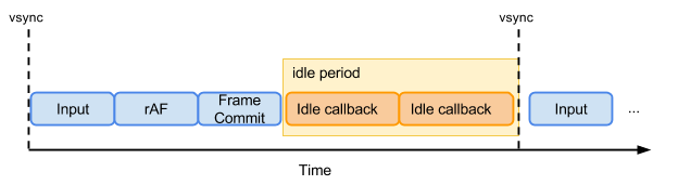After input processing, rendering and compositing for a given frame has been completed, the user agent's main thread often becomes idle until either: the next frame begins; another pending task becomes eligible to run; or user input is received. This specification provides a means to schedule execution of callbacks during this otherwise idle time via a requestIdleCallback API.