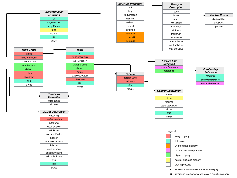 notes and common properties defined.resources property was changed to tables.foreignKeys.templates property was changed to transformations.urlTemplate property was changed from a schema property to the aboutUrl common property, and propertyUrl and valueUrl were added as common properties.virtual columns to allow data to be inserted into a row.