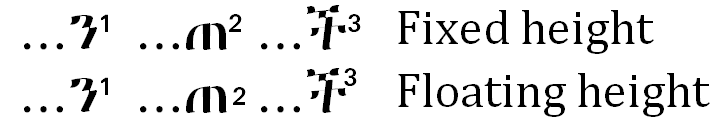The variable heights of Ethiopic letters introduces the same “fixed-vs-floating” issue with superscript text as discussed in the previous section on the Ethiopic gemination mark.