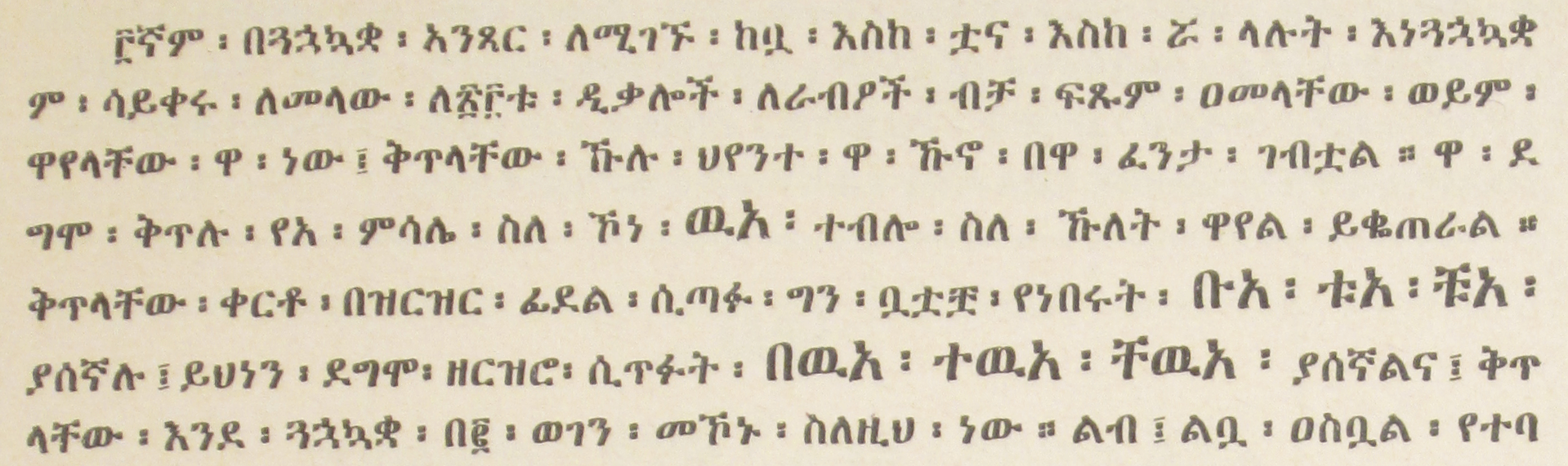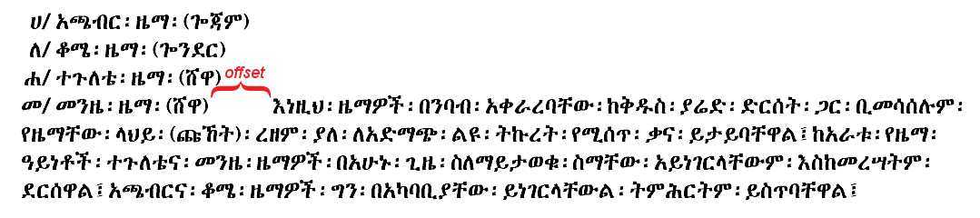 The following descriptions of Ethiopic punctuation usage has been translated from Gebre and Shewaye.